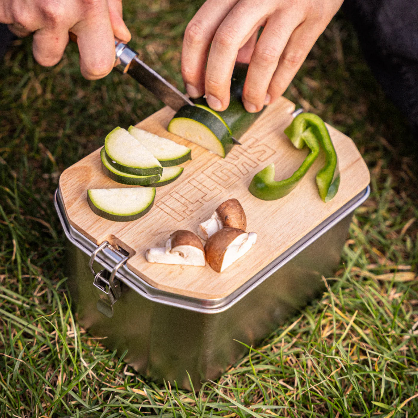 Skurðarbretti úr tré sem passar ofan í lok á SKOTTI BOKS og er hægt að festa þar með hespunum.